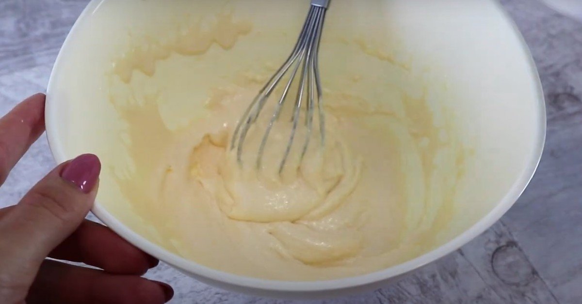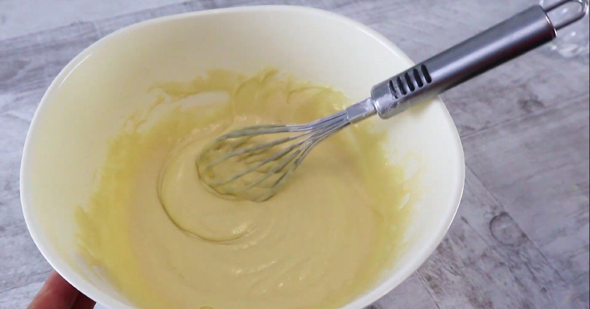 W kolejnym kroku dodaj mąkę i proszek do pieczenia i mieszaj tak długo, aż otrzymasz gładką masę bez żadnych grudek.