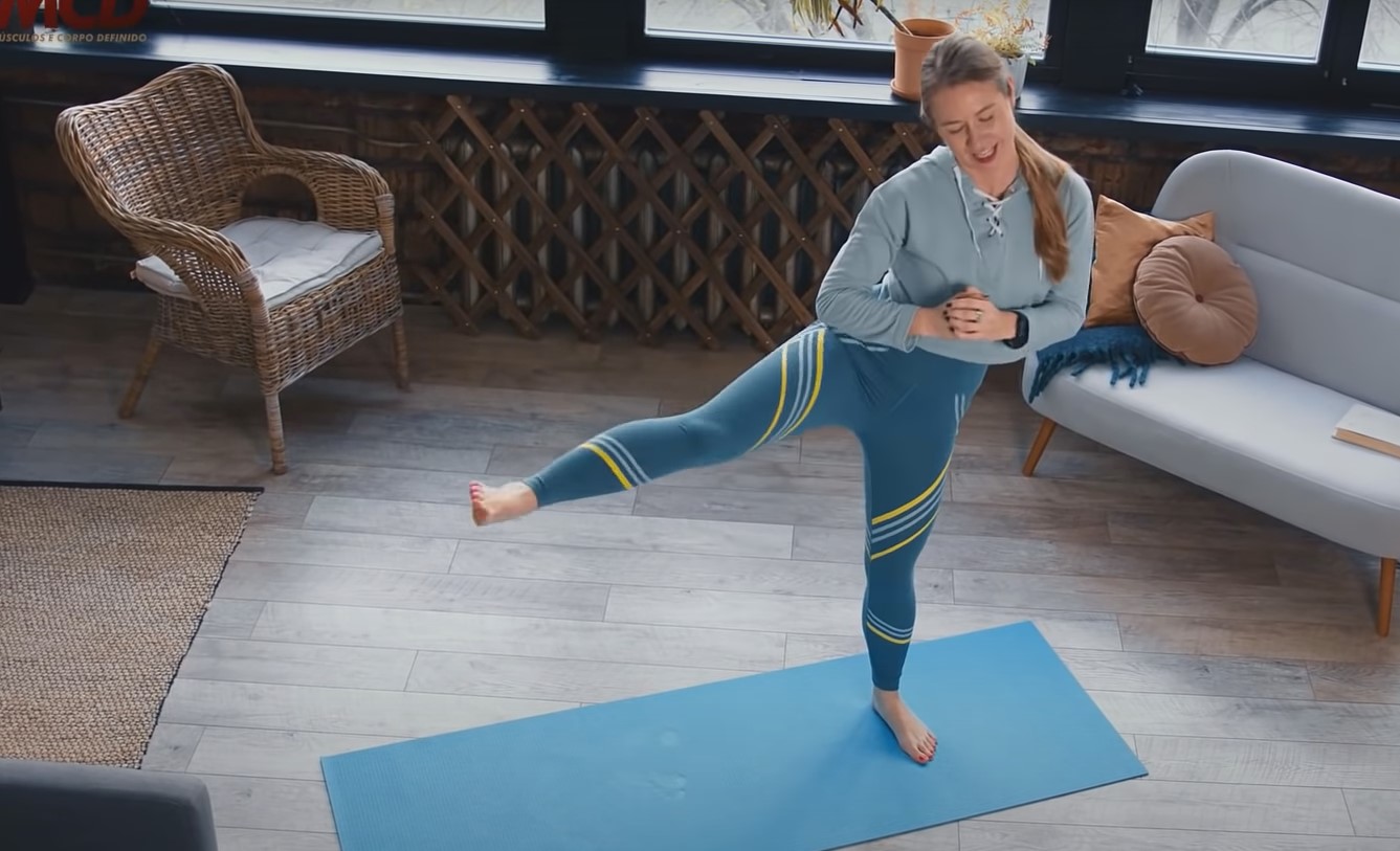 To ćwiczenie jest bardzo podobne do przysiadu, który wszyscy dobrze znamy. Zacznij od stania prosto i wykonania przysiadu. Plecy powinny być proste, a cały ciężar ciała powinien być uniesiony na pięty. Po powrocie do pozycji wyjściowej należy wykonać kopnięcie lewą nogą. Noga powinna pozostać prosta, a ciało nie powinno się chwiać. Powtórz ćwiczenie, wykonując kopnięcie prawą nogą. Ćwiczenie wykonuj naprzemiennie przez 30 sekund.