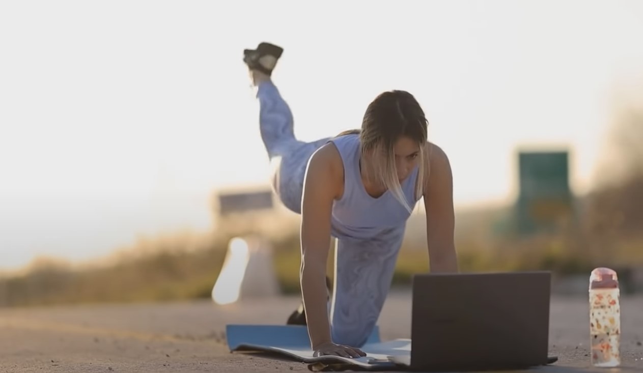 Połóż kolana na macie. Kolana powinny być proste, a ramiona zgięte. Delikatnie podnieś lewą nogę, a następnie pociągnij ją w bok i do tyłu. Następnie odrzuć ją do tyłu, aby powrócić do pozycji wyjściowej. Powtarzamy tę samą czynność z prawą nogą. Ćwiczenie należy powtarzać przez 30 sekund.