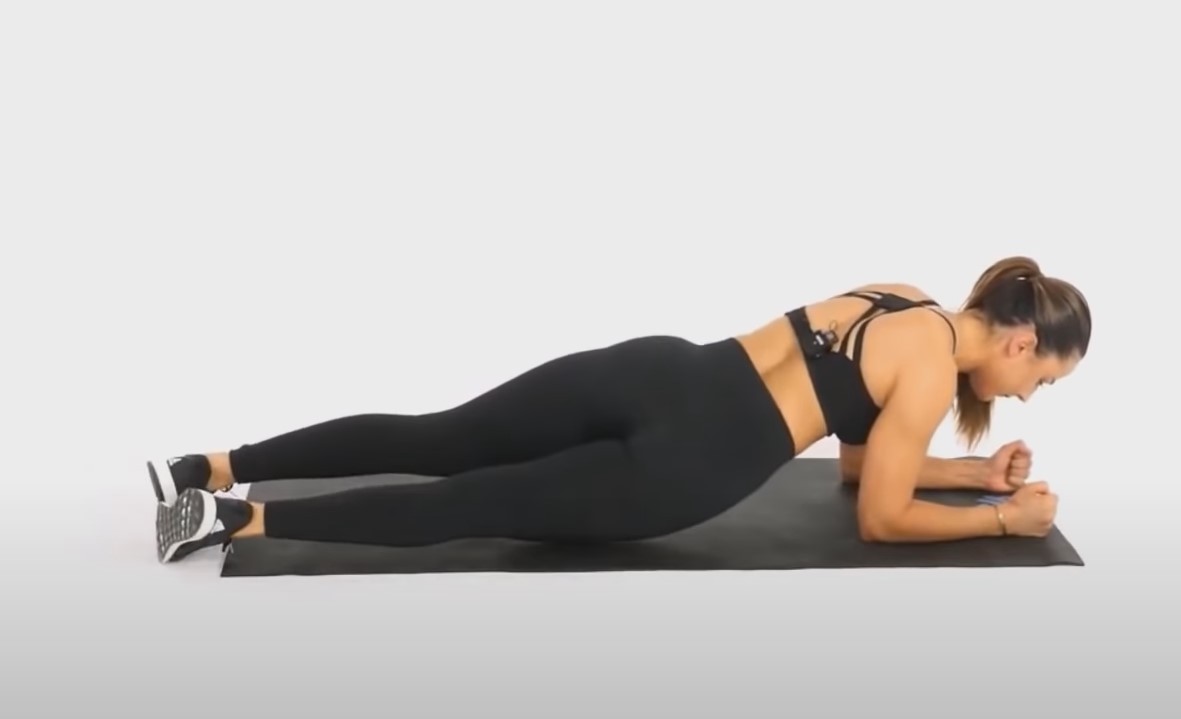 Połóż plecy na macie i zrób deskę. Napnij mięśnie brzucha. Plecy powinny być proste. Delikatnie obracaj plecy, tak jakbyś próbował dotknąć biodrami podłoża. Ćwiczenie to należy wykonywać przez 30 sekund.