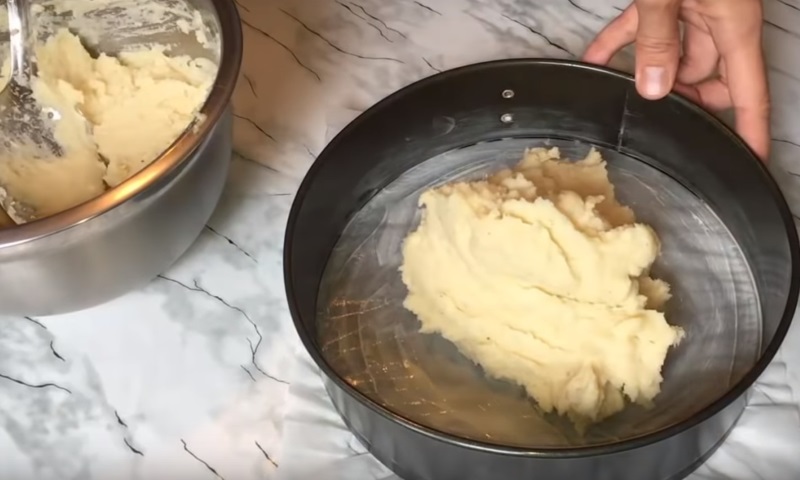 Do ugotowanych ziemniaków dodaj masło i 1 łyżkę jogurtu lub śmietany i utłucz na puree. Przygotuj okrągła blaszkę do pieczenia (ważne żeby miała zdejmowaną obręcz), na dno wyłóż puree ziemniaczane, dokładnie wyrównaj, na puree wyłóż mięsny farsz, również postaraj się go równomiernie rozprowadzić.