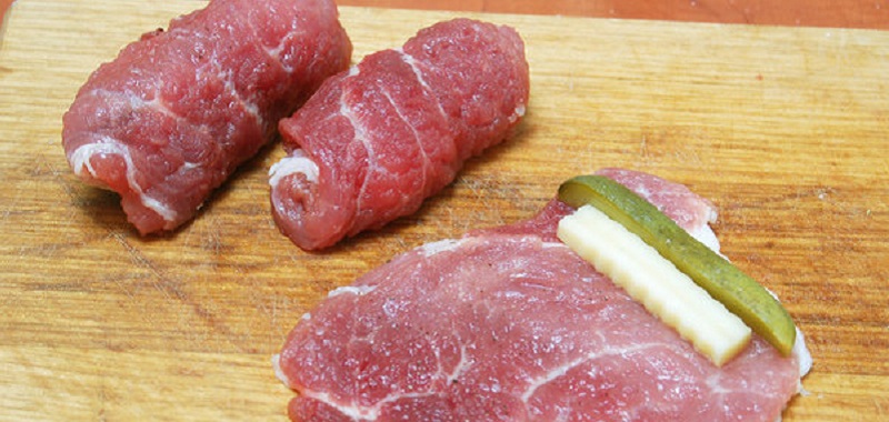 Zawijanie zrazów jak i innych rolad, zawsze przynosi lekki dreszczyk emocji i wzbudza w niektórych niepokój. To nic strasznego! Przygotowane kotlety, wraz z zawartością ogórka i sera, zawijamy od krótszego boku do krótszego boku. To sprawi, że zrazy będą wyglądać apetycznie i łatwiej będzie nam nimi zapanować na patelni.